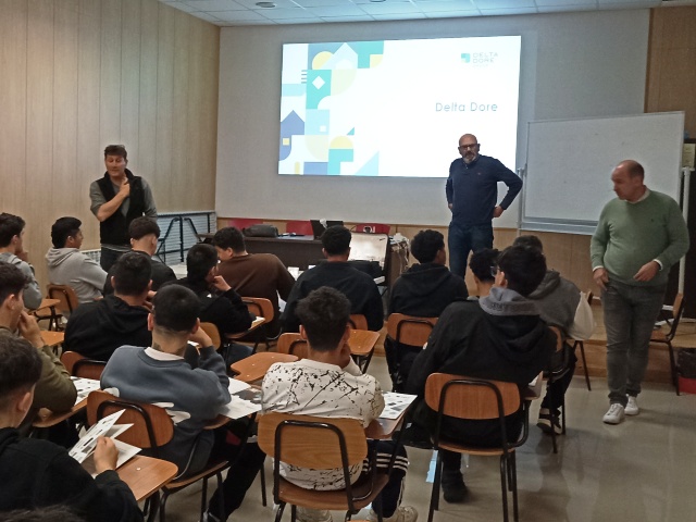 A través, de la empresa CODISA DE ELECTRICIDAD, representado por Alberto Ibiricu, el comercial Miguel Ángel Berrocal de la empresa proveedora de soluciones domóticas DELTA DORE, explicó a nuestros alumnos las característica y funcionalidades de los sistemas de control para instalaciones eléctricas de una vivienda, a la vez que trató de responder las dudas surgidas sobre este tipo de equipos en constante evolución.